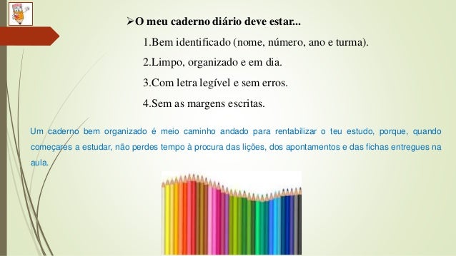 - mantenhas o caderno limpo e asseado.